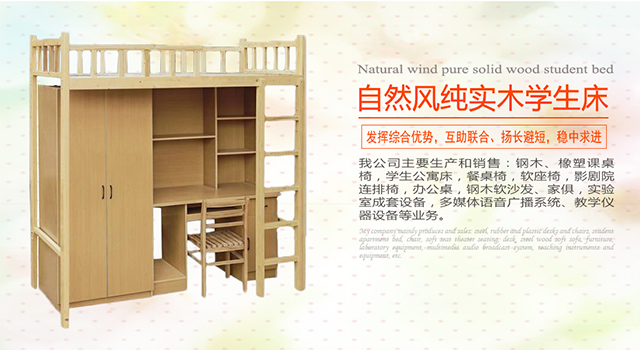 主要生产和销售:钢木、橡塑课桌椅,学生公寓床,餐桌椅,软座椅,影剧院连排椅,办公桌,钢木软沙发、家俱,实验室成套设备,多媒体语音广播系统、教学仪器设备等业务。我公司拥有先进的生产设备,完善的产品检测手段和质量保证体系,并且通过ISO9001质量管理体系认证、ISO1400环境管理体系认证。我公司的员工具有较强的责任感。我们弘天人本着“求实、高效、创新”的团除精神,参与到激烈的市场竞争中来,以优质的产品质量,优惠的产品价格,令人满意的销售服务,赢得您的支持与依赖。我们原同四海知音、各界同仁携手共同发展。企业使命:---开拓进取。诚信服务,以质量和信用为本。规范管理,引进选进、科学方法。加强合作,建立良好关系。开发新品,发展实业,优化产业结构。创立品牌,报效国家,为经济发展、环境保护和社会进步做出贡献。弘天承诺,为您负责。【正派】经营是弘天的一贯原则【创新】进取是弘天的生存基础【团队】协作是弘天的致用法宝。